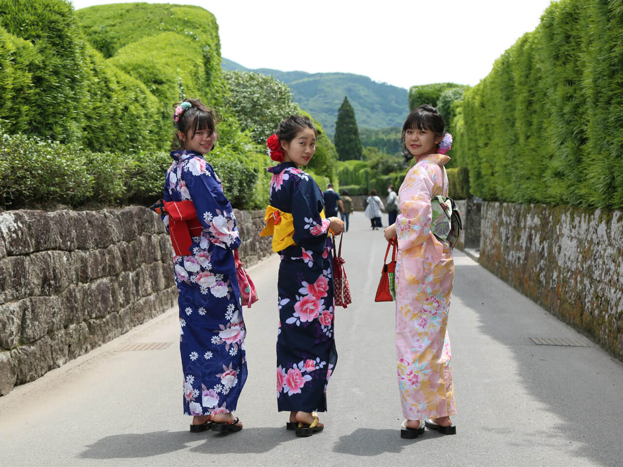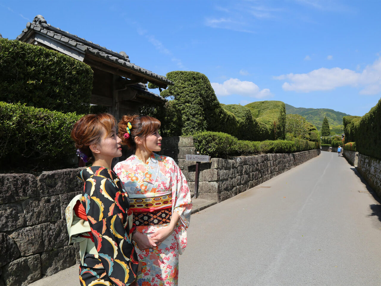The Chiran Samurai Residences have many attractions such as cafes, restaurants, bamboo forest paths, gardens, and Chiran-style traditional duplexes. On a clear day, you can even see Mt. Hahagatake which will complement your kimono beautifully!
